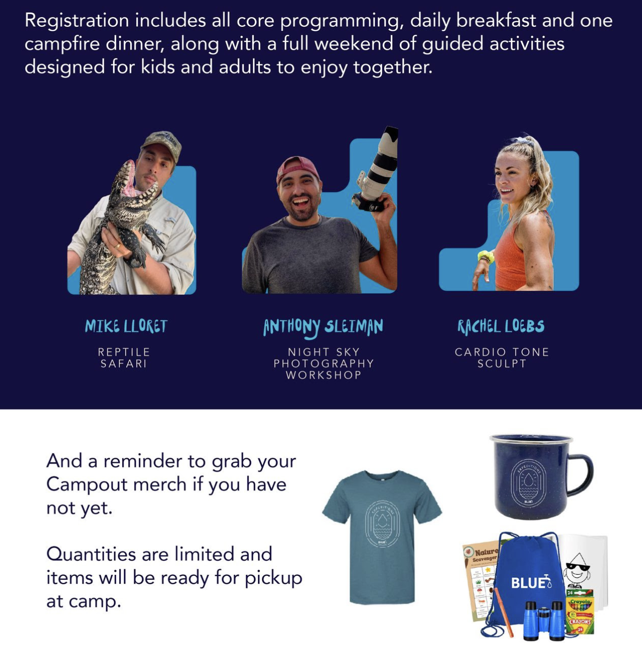 Event Calendar BLUE Gala Family Camping Weekend Sweat for Water